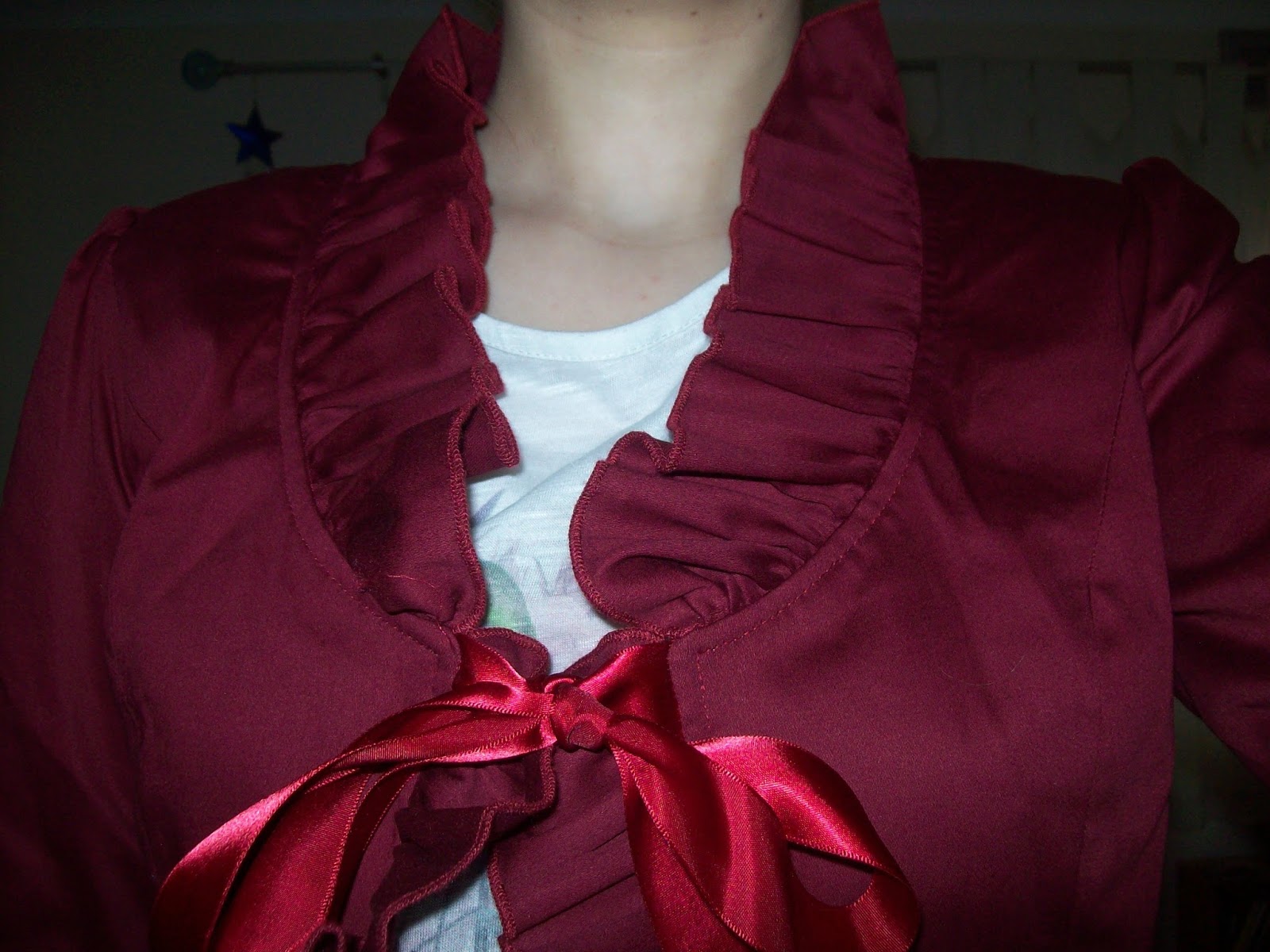 Here we have the JSK. The bodice looks well fitted. I do think the shape of the bodice is a bit simple, but with a busy print simplicity is maybe not such a bad thing. The straps look a suitable width and quite supportive. I love the way the insides of the straps and neckline have been lined with gold braid and lace. The lace has a really pretty design. I really like the way it has been set out too, with the square neckline still being neatly defined. It sits nicely on the dress and stops the dress looking too basic. The waist area has the same wide ribbon belt as the OP. It is good to have a bit of solid colour to break up the business of the print. The bodice features 4 pairs of buttons with chains dangling between them. It looks really smart and adds a slight military feel to the dress, which I really like. My only complaint is that I wish there was 1 fewer pairs of buttons. I don't feel the lowest set of buttons and chain is really needed and it gets in the way of the waist belt. The neckline is topped with a matte ribbon bow. The bow has a cute shape but maybe the tails of the ribbon could have been a bit shorter. The bow is detachable, but I think it adds a much needed touch of cuteness. The back has a panel of shirring, which is topped neatly by a ribbon corset. The stock photos show the skirt is very full and it flares outwards beautifully. I really like the full, rounded shape in the stock photos. The skirt is again kept simple, so the print is displayed perfectly. The bottom hem is then finished off neatly with the same regal lace.